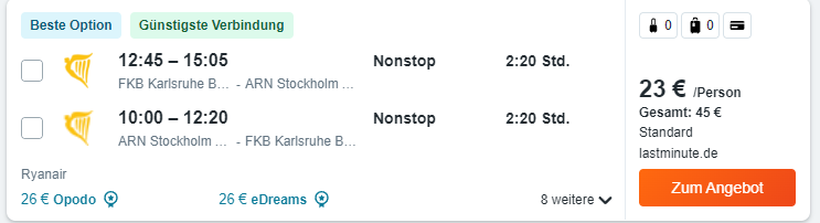 瑞典除了冬天看极光,夏天也是极好的旅游季节,亲近自然,感受纯粹的夏天。约上几个好友,自驾穿越广阔的瑞典,如果4个人一起,租车加机票每人72欧,情侣一起每人112欧。瑞安航空提供德国往返斯德哥尔摩大量特价机票,比如卡尔斯鲁厄往返每人23欧,其它出发城市价格略不同。当地租车8天总共195欧。