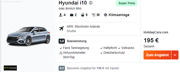 8天自驾环游瑞典72欧,包括往返机票和租车